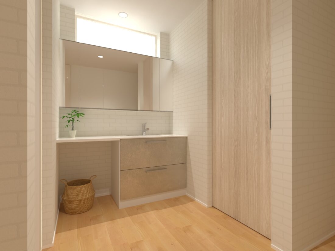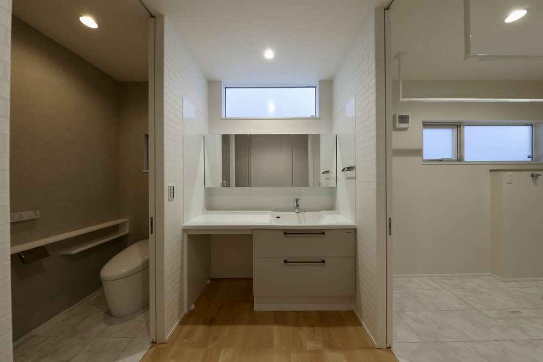 LDKと脱衣室・物干しスペースをつなげ、冬場の室内干しにも活躍する家事ラク動線を実現。また動線に沿って必要な収納を配置し、家事や身支度がスムーズに行えるように設計。毎日の“ちょっとした手間”を解消し、整った暮らしを続けられる工夫を取り入れました。