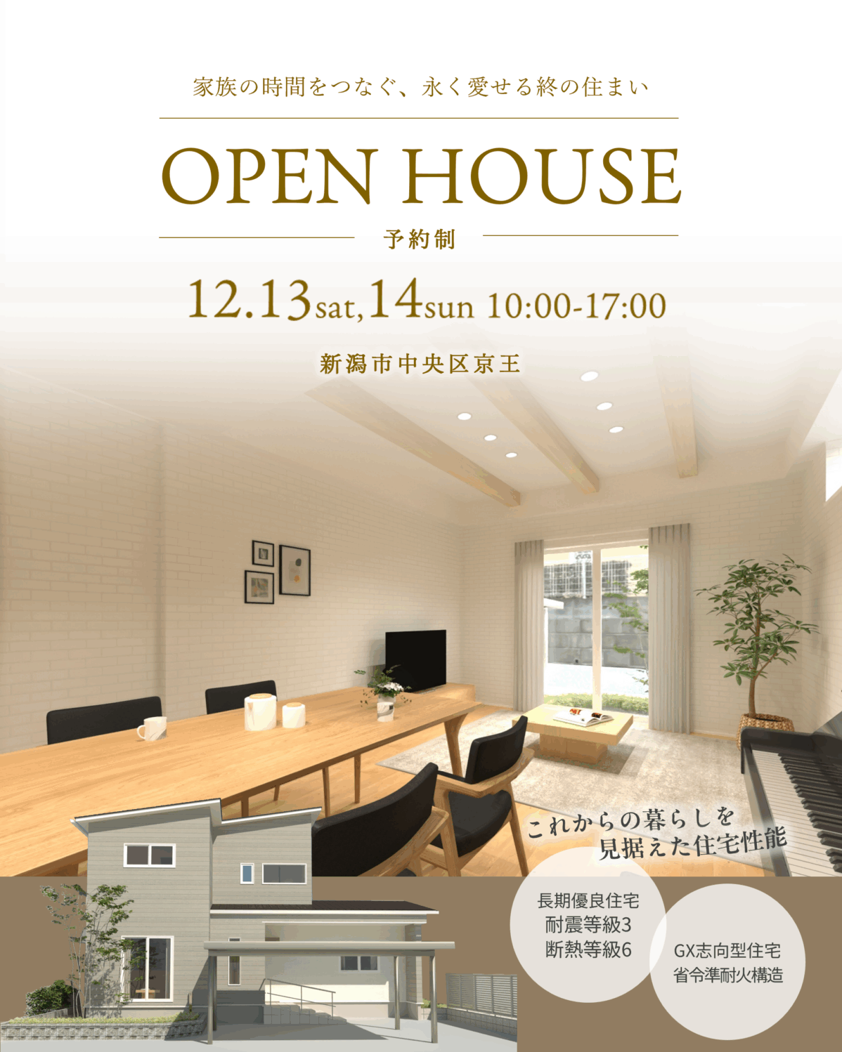 | 見学会・イベント | 【お客様の家 完成見学会】新潟市中央区京王│家族の時間をつなぐ、永く愛せる終の住まい |
