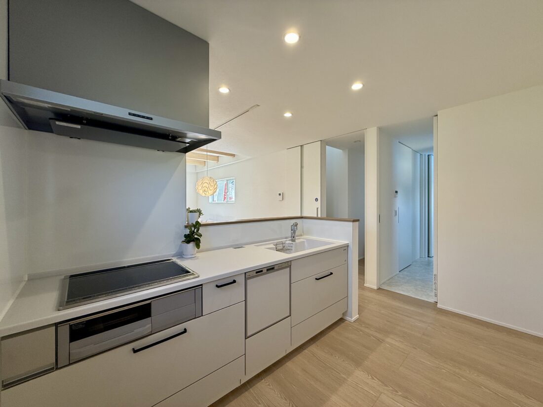 ●システムキッチンは、人工大理石のシンクに食器洗浄乾燥機付き