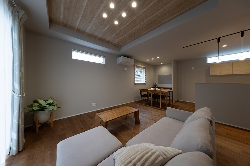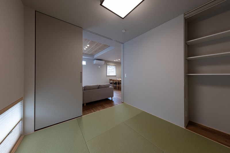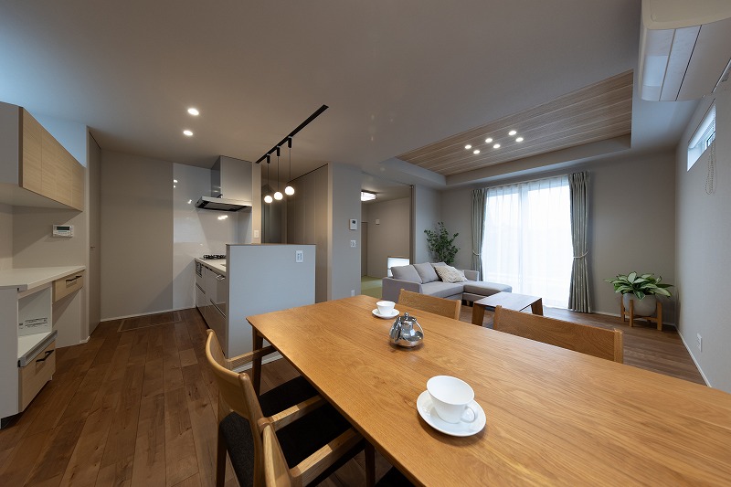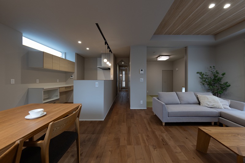 ゆとりあるLDKは、家族がそれぞれの時間を過ごしながらも自然とつながる住まいの中心。隣接する和室と一体的に使うことで、より広がりのある空間として活用できます。