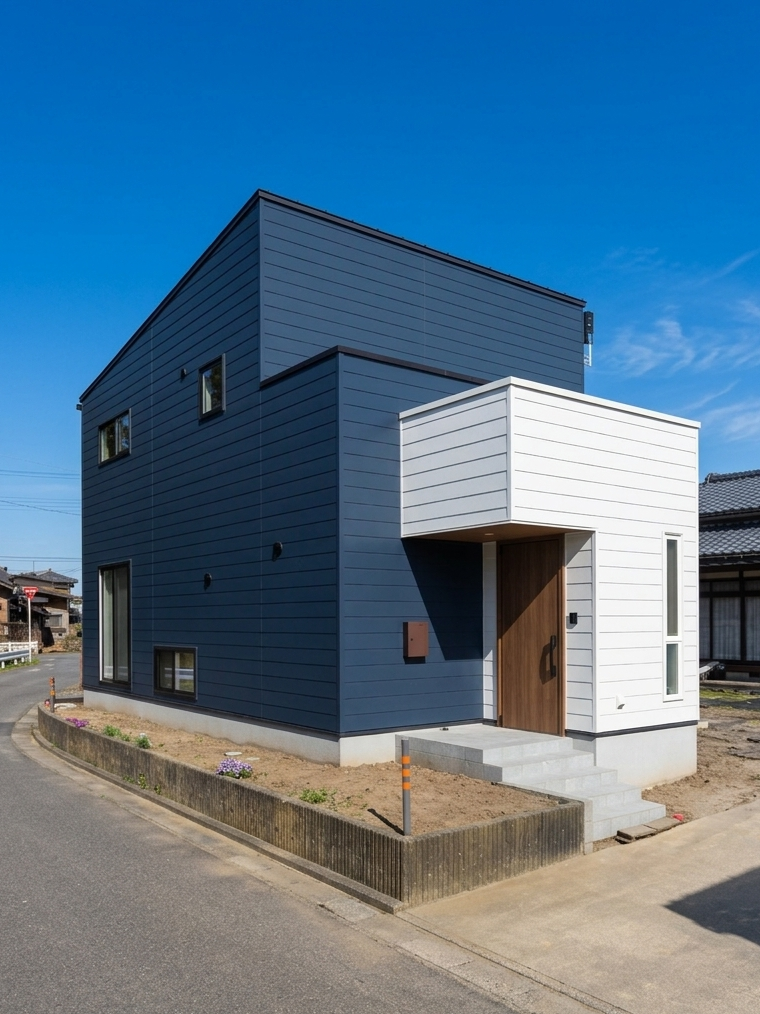 ご実家と同一敷地内という条件の中で、互いに配慮した配置計画とし、ほどよい距離感とプライバシーを確保しました。
