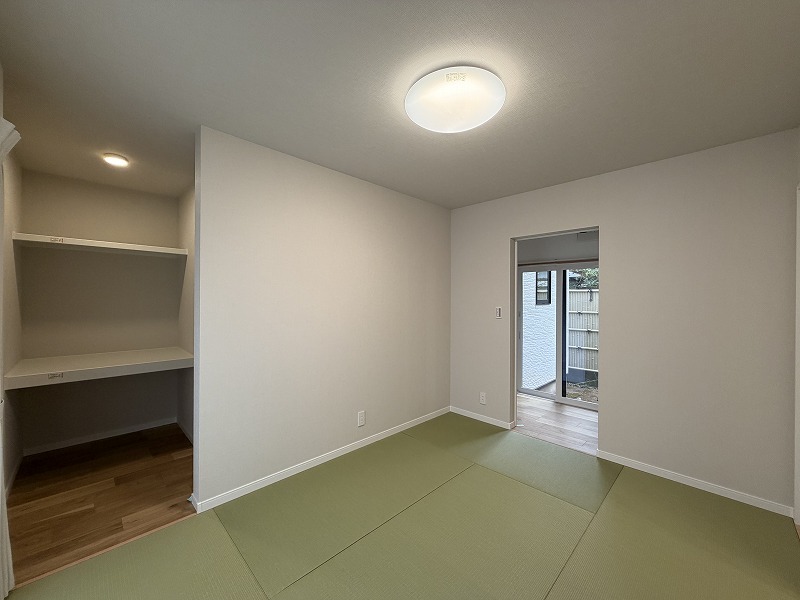 廊下の両端には建具を設置し、空調効率を高める工夫を。玄関側を閉じて外気を抑えつつ、必要に応じて開閉できる柔軟な使い方が可能です。