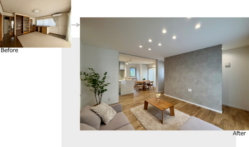 見た目の心地よさだけでなく、構造・性能・暮らしやすさを総合的に整えた今回のリノベーション。家族がこれからも安心して暮らし続けられる住まいとなりました。