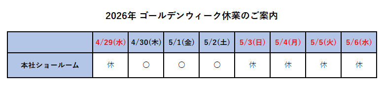 ※本社ショールームは、5/7(木)から通常通り営業いたします。