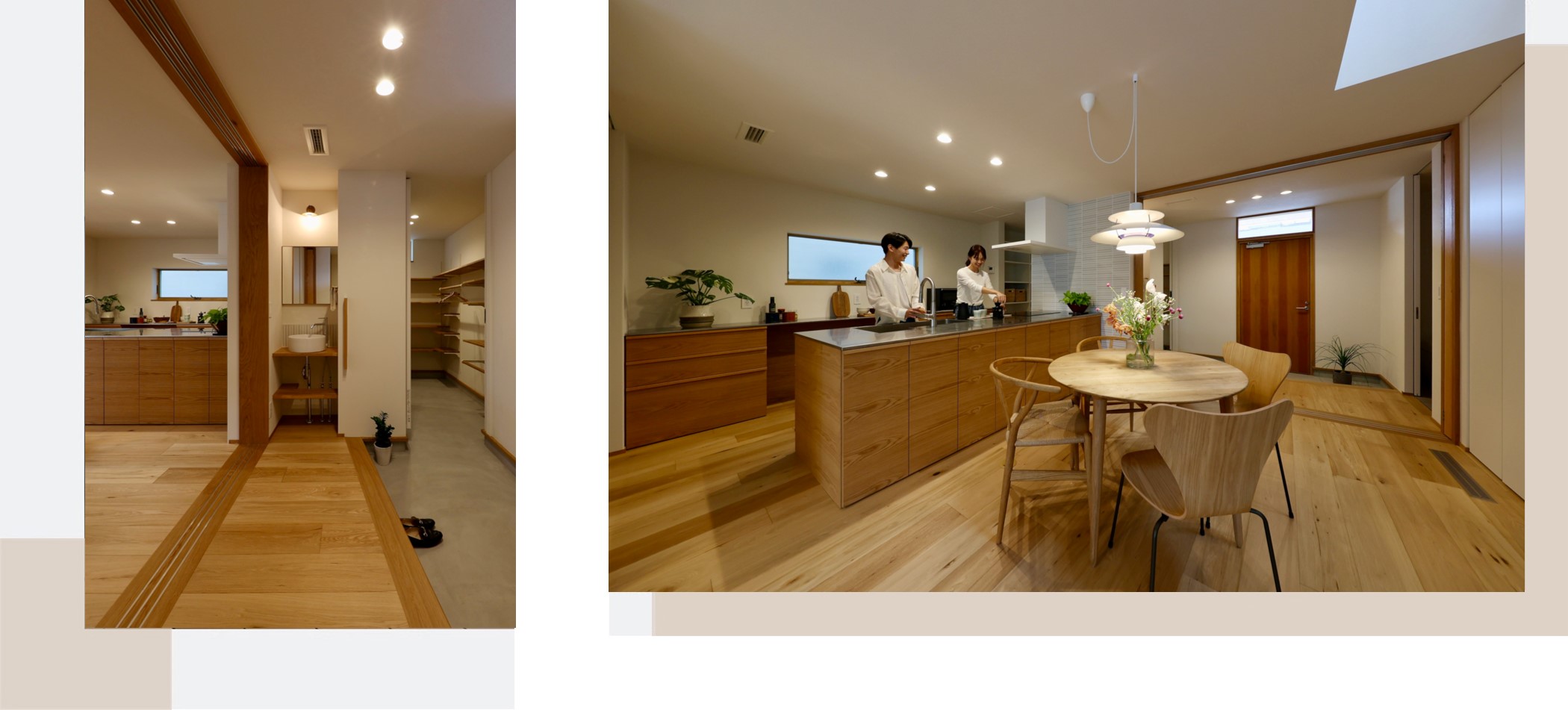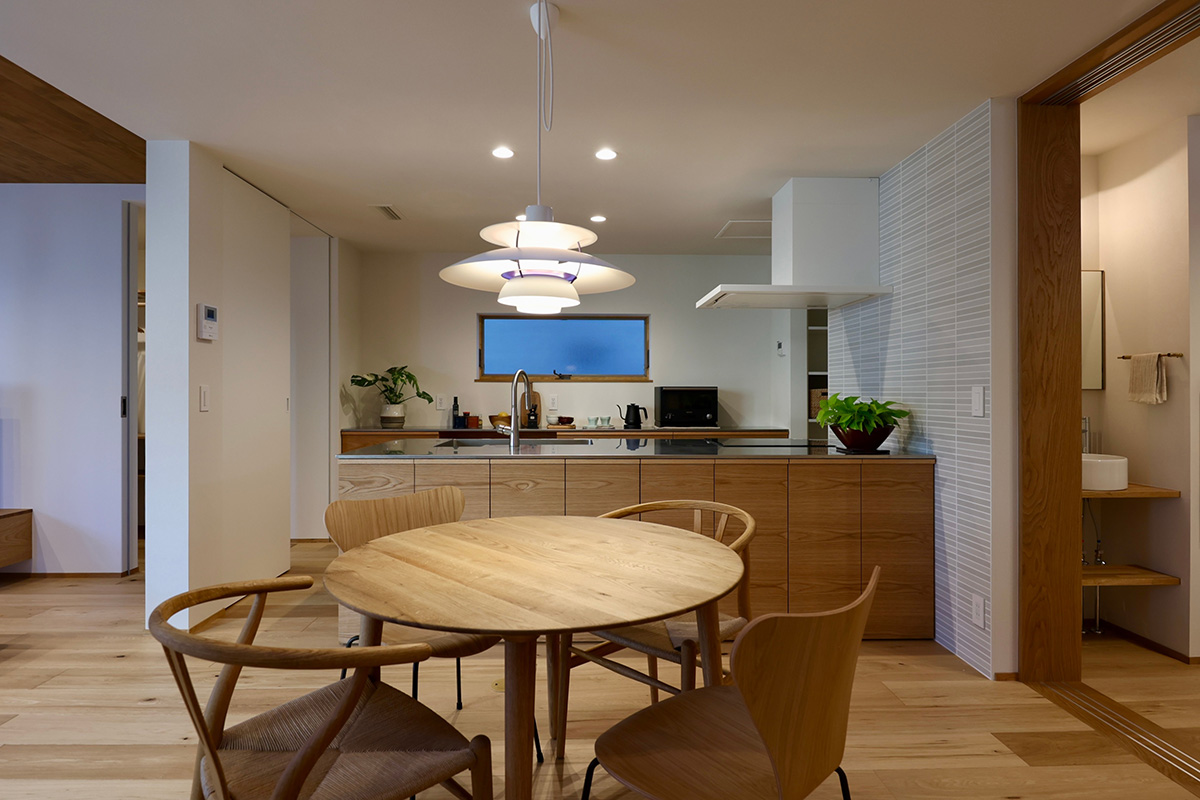 食事のひとときが楽しく、ワクワクするようなダイニングと照明。おいしい料理づくりのためのストレスフリーなキッチン動線。