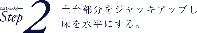 地盤沈下などにより基礎の石が沈下していたので、土台をジャッキアップして水平にし、新しいベースコンクリートで石を根巻にする。